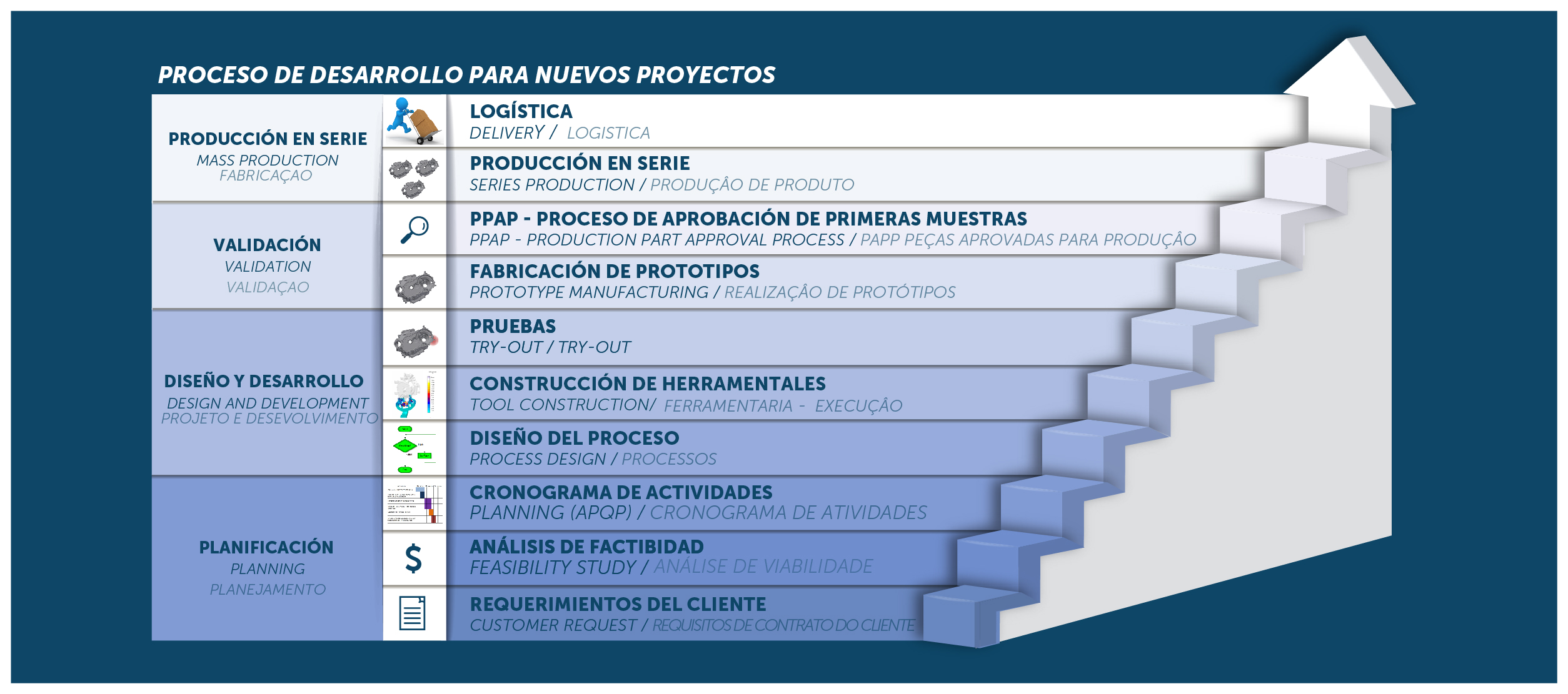 Our technology, team, and collaborators allow us to be an active part of the definition, technical improvement, and manufacturing of products, as well as the development and construction of tooling. Sturam S.A. is also capable of integrating other finishing processes or component assembly to offer the client completely finished products.